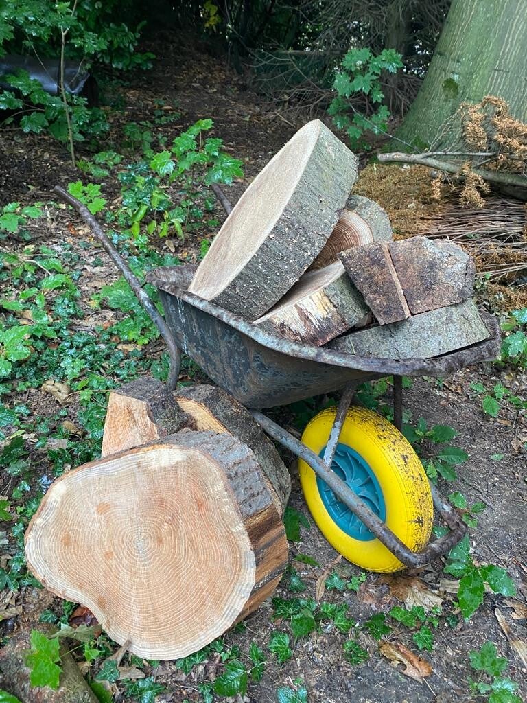 Het heeft gestormd, dan ben ik altijd op zoek naar uitgewaaide of afgebroken bomen! Dit worden weer mooie meubeltjes in o.a. eik en appelaar.